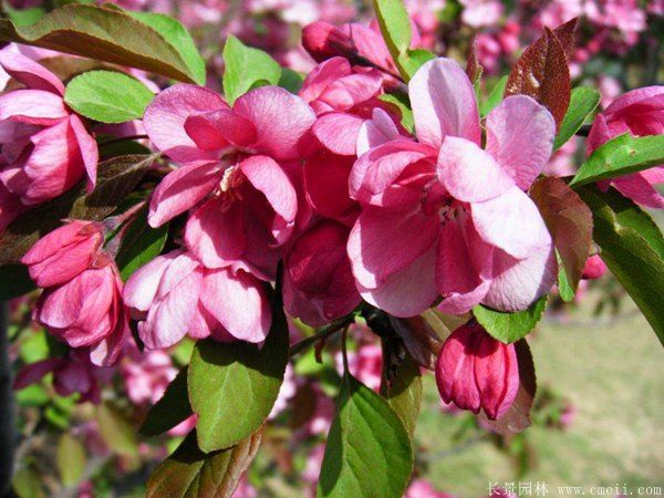 北美海棠還可與很多種喬木,落葉灌木,常綠地被,草花等等配合栽植成多種的景象,還能夠裝飾綠地,不僅增加了景象顏色,而且?guī)?dòng)了園林氛圍。中國有名的北美海棠園旅游景點(diǎn)有十堰、常州、六盤水、重慶、杭州等,隨著綠化家園在社會(huì)經(jīng)濟(jì)發(fā)展,生態(tài)發(fā)展的重要地位,北美海棠目前已經(jīng)成為各地區(qū)使用數(shù)量特別大的苗木品種。